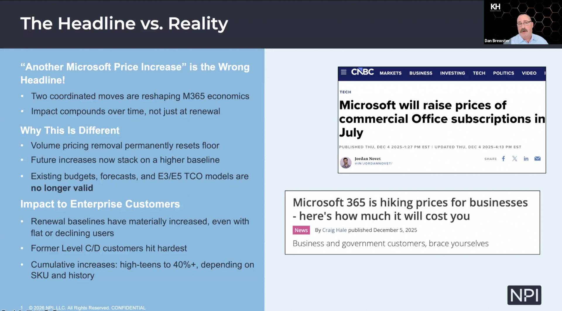 Microsoft’s recent M365 pricing changes signal a structural shift in how enterprise licensing costs are set and sustained. With the removal of waterfall discounts in late 2025 followed by another broad price increase in July 2026, many organizations are underestimating the compounding effect on their long-term Microsoft spend, even in stable headcount environments.