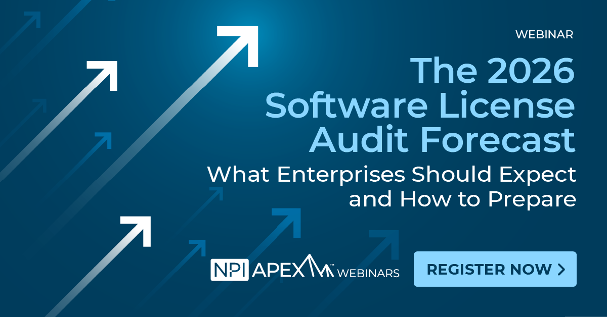 Webinars The 2026 Software License Audit Forecast: What Enterprises Should Expect and How to Prepare Audit Defense, Software Asset Management Share This Article Subscribe For Updates Uncover negotiation leverage and unlock savings across your IT spend. Software license audits are evolving and 2026 will bring more aggressive tactics, tighter timelines, and higher financial stakes. In this webinar, NPI breaks down what enterprises should expect from major software publishers in 2026, where audit risk is increasing, and how procurement, SAM, and IT leaders can prepare now to protect budget and negotiation leverage. Here's what you'll learn: How software vendors are changing audit tactics and enforcement strategies heading into 2026 Which publishers, license models, and environments are driving the greatest audit risk Where enterprises are most commonly exposed What “audit-ready” actually looks like in 2026, including data, governance, and operational readiness Practical steps you can take now to reduce exposure and preserve leverage before the audit notice arrives Share This Article Subscribe For Updates Uncover negotiation leverage and unlock savings across your IT spend.