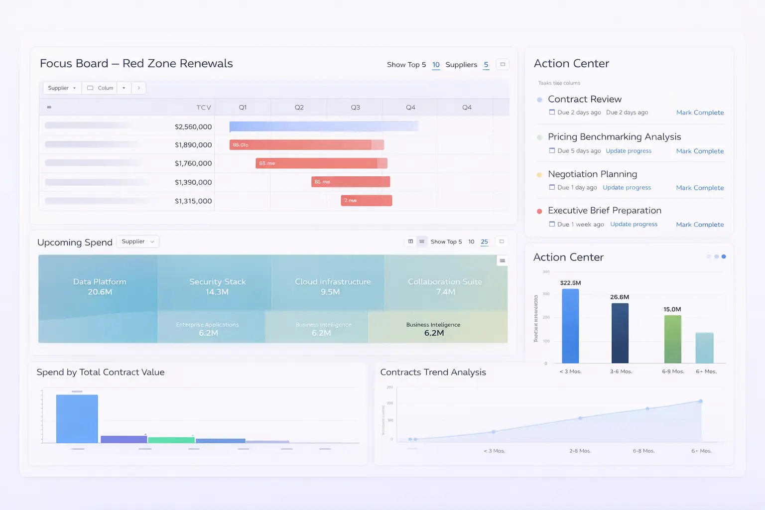 Redefine the way you manage procurement activities. Intelligently prioritize and categorize deals by value, expiration, variability, and negotiability to streamline deal management. Proactively manage risk with real-time alerts for deals requiring immediate attention.